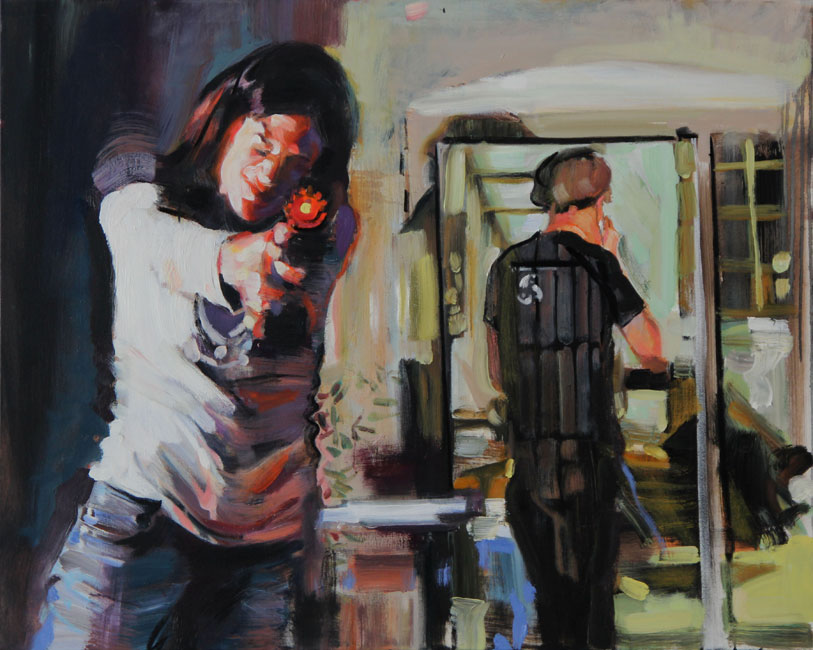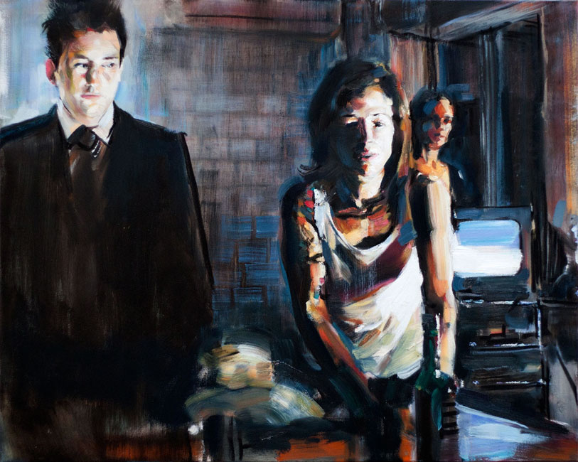 Das Paar Am Nachmittag Der Schuss Personen im dunklen Raum